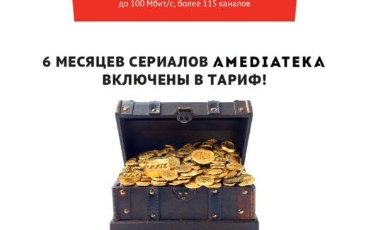 В новый тарифный план мы собрали все самое лучшее – быстрый и надежный домашний интернет на максимальной скорости до 100 Мбит/сек и немало 120 каналов интерактивного телевидения. Дополнительно на выгодных условиях можно приобрести Wi-Fi роутер – в рассрочку или с поддержкой единовременной оплаты. А для купивших ТВ приставку еще один сюрприз: шесть месяцев доступа к подписке AMEDIATEKA с обширной собранием популярнейших сериалов, среди которых «Игра престолов», «Мир Дикого Запада», «Миллиарды», «Убивая Еву» и многие иные.